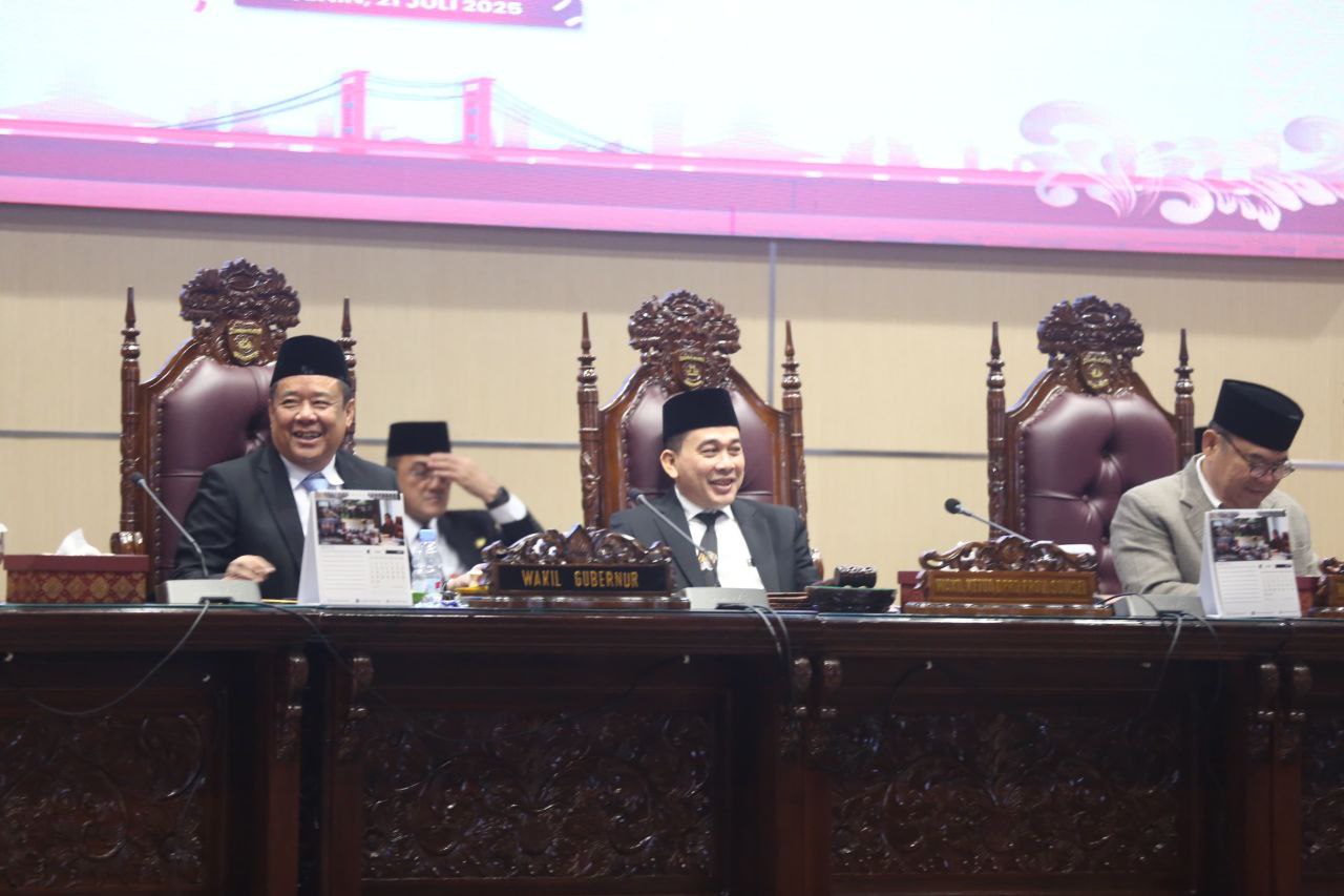 dalam Rapat Paripurna XVIII di Ruang Rapat Paripurna DPRD Sumsel, Jalan POM IX, Palembang, Senin (21/7/2025). Rapat paripurna dipimpin oleh Wakil Ketua DPRD Sumsel H Nopianto, SSos, MM didampingi Wakil Ketua DPRD Sumsel H M Ilyas Panji Alam, SE, SH, MM. Hadir Wakil Gubernur Sumsel Cik Ujang, SH.