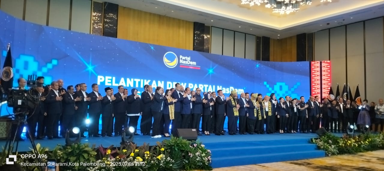 Ketua Umum DPP Nasional Demokrat (Nasdem) H Surya Paloh melantik jajaran Pengurus, Dewan Pertimbangan, Dewan Pakar, Sayap dan Badan Partai DPW Nasdem Sumatera Selatan (Sumsel) Periode 2025-2029. Pelantikan dilaksanakan di Hotel Santika Bandara Palembang, Sabtu (5/7/2025).