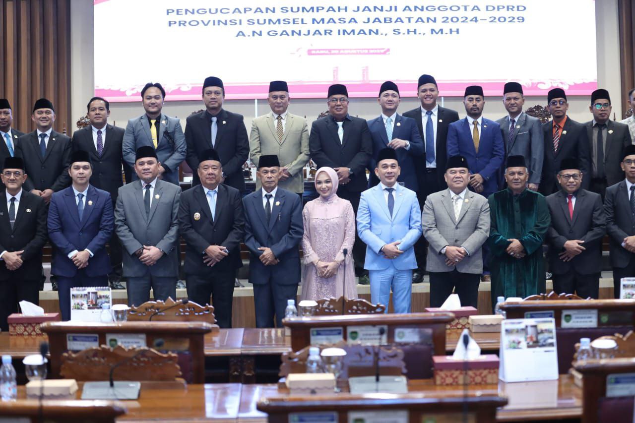 Dewan Perwakilan Rakyat Daerah Provinsi Sumatera Selatan (DPRD Sumsel) menggelar Rapat Paripurna XIX dengan agenda ‘Pengucapan Sumpah/Janji Anggota DPRD Provinsi Sumsel Pengganti Antar Waktu (PAW) Sisa Masa Bakti 2024-2029,’ di Ruang Rapat Paripurna DPRD Sumsel, Jalan POM IX, Palembang, Rabu (20/8/2025).