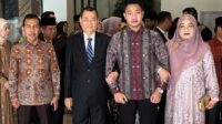 “Saya mewakili keluarga besar dari kedua mempelai mengucapkan terima kasih yang sangat besar untuk seluruh hadirin yang telah menyempatkan waktu untuk bisa hadir di acara lamaran kedua mempelai ini,” ujar Ishak Mekki.