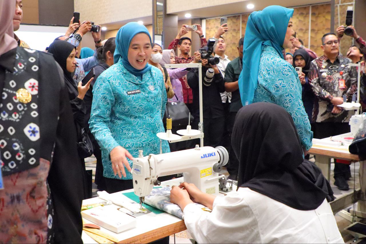 Ketua Umum Tim Penggerak Pemberdayaan dan Kesejahteraan (TP PKK) Tri Tito Karnavian, Kamis (31/7/2025) secara resmi membuka pelatihan dasar menjahit bagi ibu rumah tangga di Hotel Harper Palembang.
